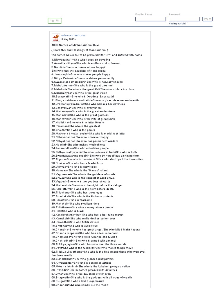 1008 Names Of Lakshmi : She is the wife and active energy of lord vishnu.