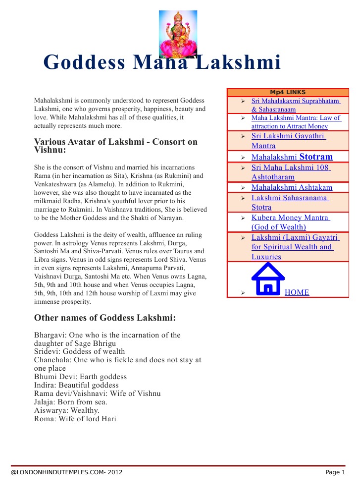 Lakshmi Devi Ashtakam In English : Reciting this mantra can bring you eventually, she became lord vishnu's consort.