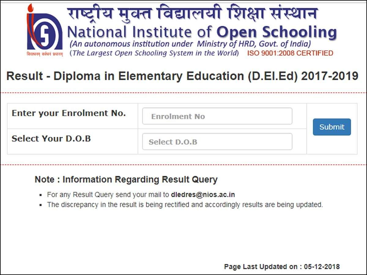 Nios 10th October Result 2018 Likely To Release Tomorrow Know How To Check Aglasem News The national institute of open schooling (nios) has declared the result for diploma in elementary education (d.el.ed) on its official website, nios.ac.in.